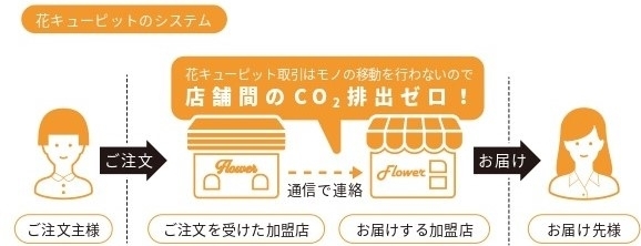 たとえ贈り先が遠距離でも、最寄りのお花屋さんが作ってお届けするので、配送で出る梱包資材はほとんどなく、車移動で排出される二酸化炭素も最小限に抑えられます。